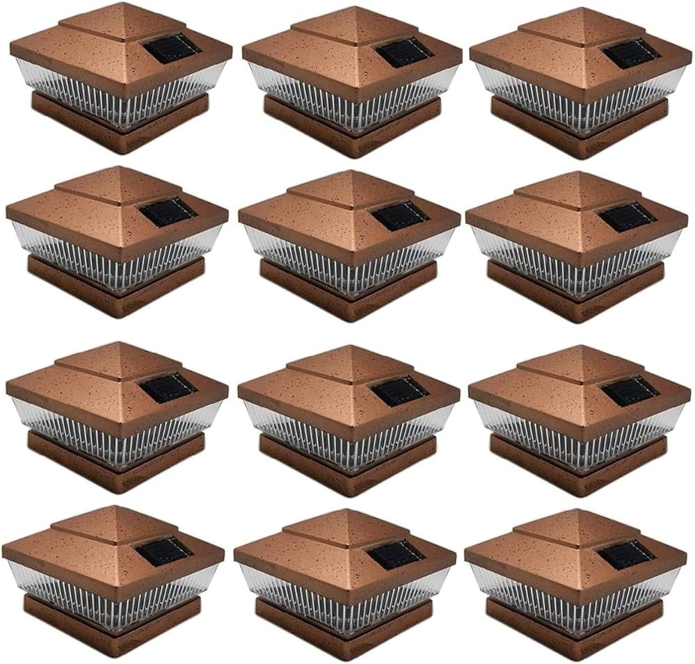 12 Pack Outdoor 5" X 5" Solar 5-LED Post Deck Cap Square Fence Light Landscape Lamp PVC Vinyl (Copper)