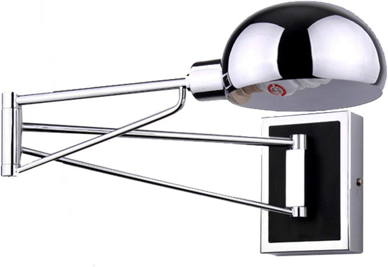 Wall Lamp Chrome, Swing Arm Wall Lights with Switch, Industrial Retro Wall Sconce Lighting Fixture E27 Base for Home Hotel Corridor