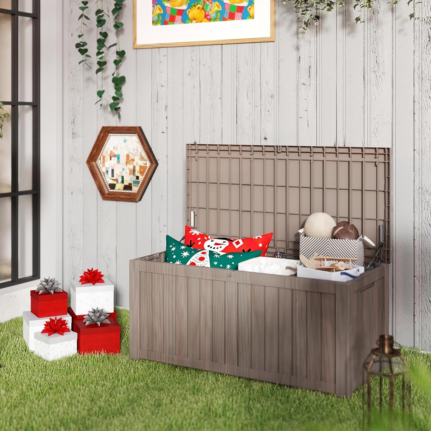 Keenso Outdoor Storage Box, Outdoor Storage Deck Box Deck Boxes 60L Folding Detachable Bin