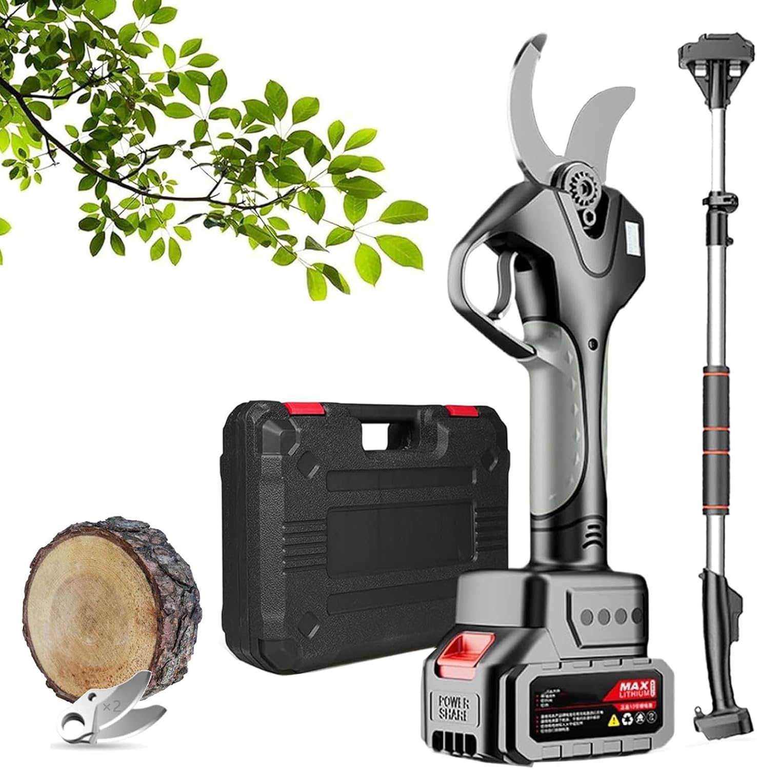 Cordless Pruning Shears with Pole, 50mm with 2 * 4500mAh Batteries, 2.1m Extension, for Tree Pruning.