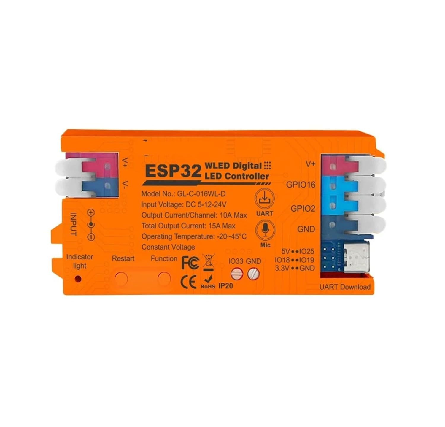 ESP32 WLED Controller IP65 Waterproof Dynamic Light DC5-24V LED RGB IC Outdoor WS2811 WS2812 SK6812 WS2813 WS2815