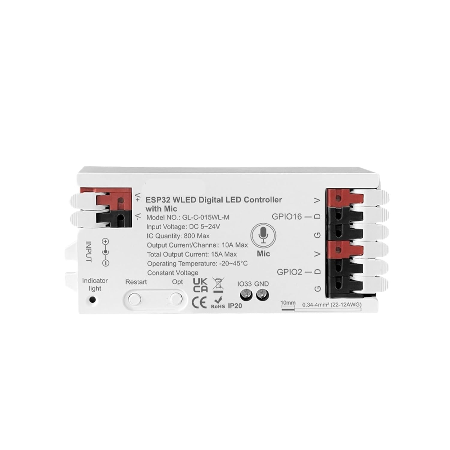 ESP32 WLED LED Controller Microphone Music Dynamic RGB IC DIY(White Controller)