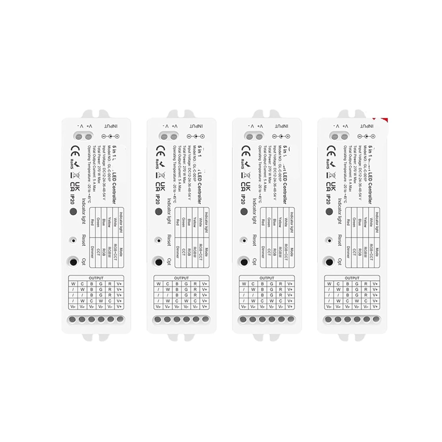 3.0 DC12-54V 5-in-1 RCT/RGBW/RGB/CCT/Dimming LED Strip Controller(4PCS 5in1 Controller)