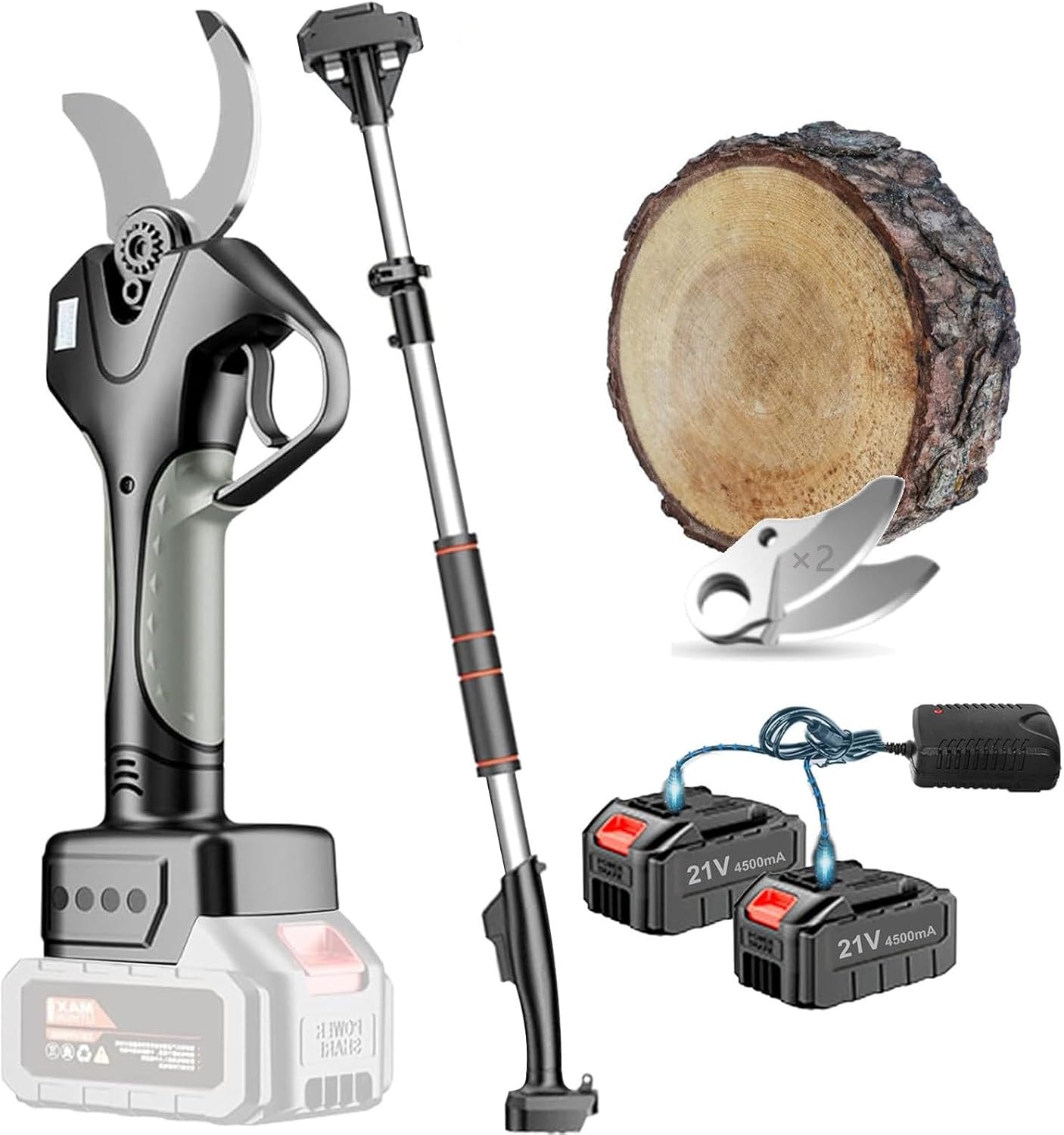 Cordless Electric Pruning Shears with 50mm Blade, 2×4.5Ah Battery, Adjustable 4.3-6.9 Ft Pole, Digital Display, Long Reach Garden Branch Scissors for Effortless Trimming