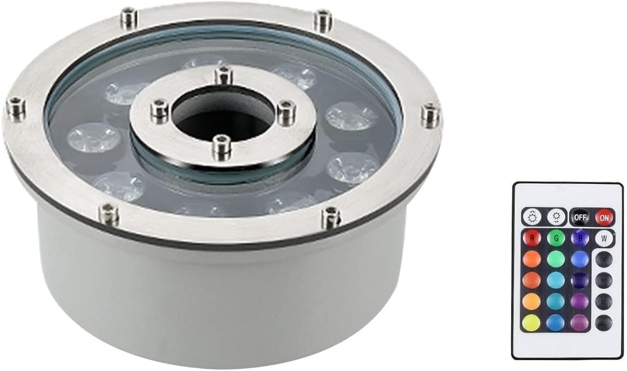 RGB LED Fountain Light with Remote Control - Submersible Underwater Light, Medium Hole Round Underwater Lights, IP68 Waterproof Submersible Landscape Lighting(AC 12V,24W)