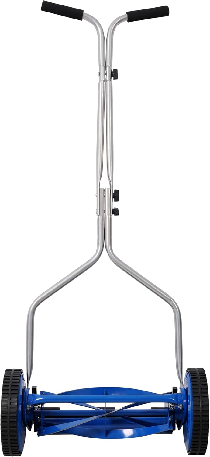 16-Inch Manual Reel Lawn Mower with 5-Blade Ball‑Bearing Reel, Adjustable Height (0.5–2.25"), Polymer 10" Wheels, Eco‑Friendly Push Mower for Yard, Garden (Blue)
