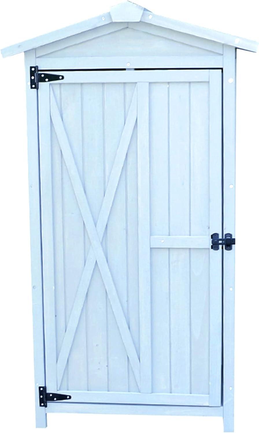 Weatherproof Wooden Garden Shed Storage Cabinet for Outdoor Use 55.1In Tall Green Patio Lawn House for Garden Organization. (White 140X80X53Cm)