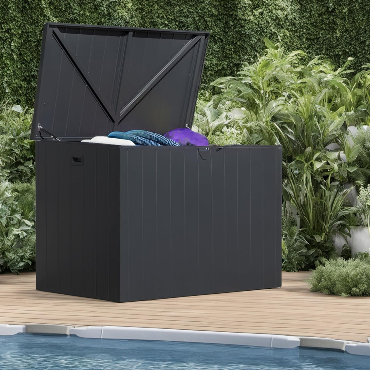 Deck Box XL – 230-Gallon Steel Storage Box with Padlock Capability, Durable & Weather-Resistant, Perfect for Patio Furniture Cushions, Pool Toys, Gardening Tools & More, Contemporary Finish