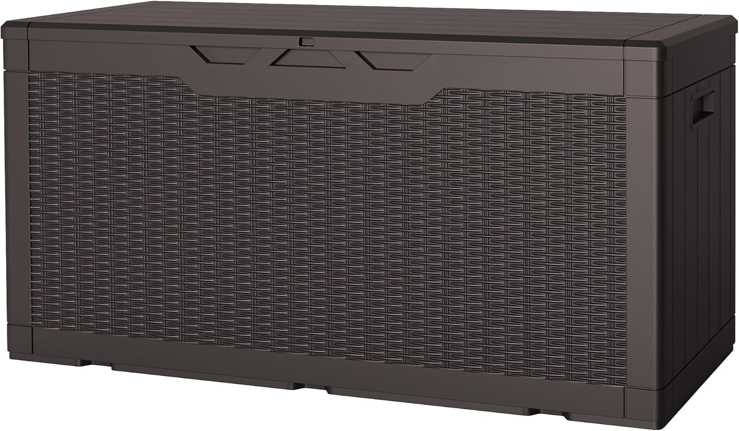 Outdoor Storage Box, Resin Deck Boxes Indoor and outdoor, Waterproof Storage Box Lockable Lid (Grey, 73 Gallon)
