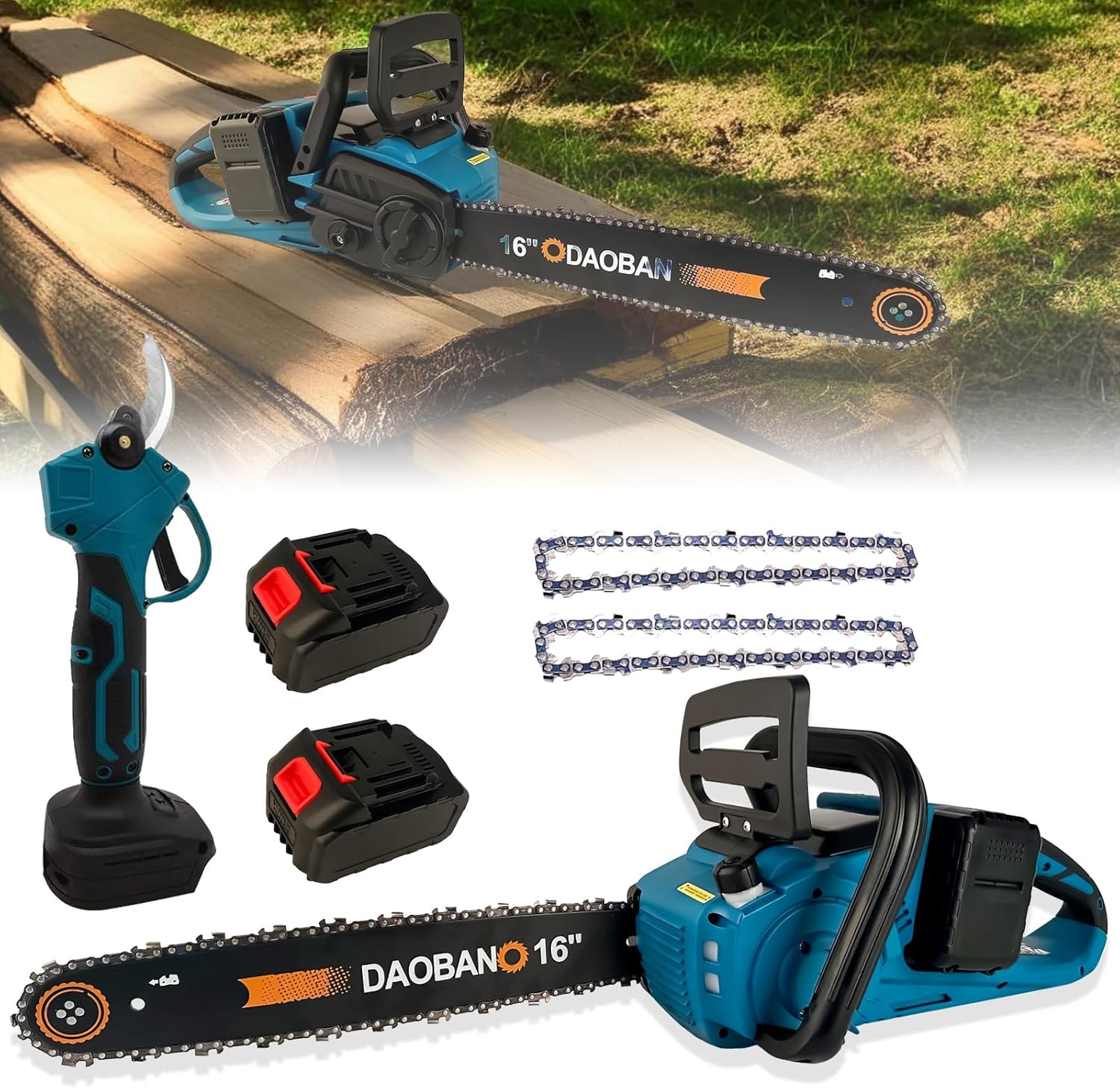 Electric Chainsaw 42v 16 Inch Pure Copper Brushless Motor Cordless Electric Saw, 2 4.5ah Batteries And 1 Fast Charger,Power Chain Saws For Trees Wood Cutting And Tree Pruning Motosierra (Blue)