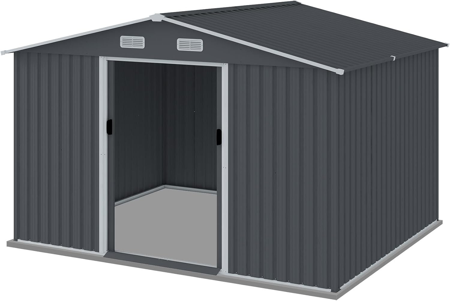 Only choice Outdoor 8 x 10 Ft. Storage Shed Large Metal Tool Sheds, Heavy Duty Storage House with Sliding Doors with Air Vent for Backyard Patio Lawn to Store Bikes, Tools, Lawnmowers Grey