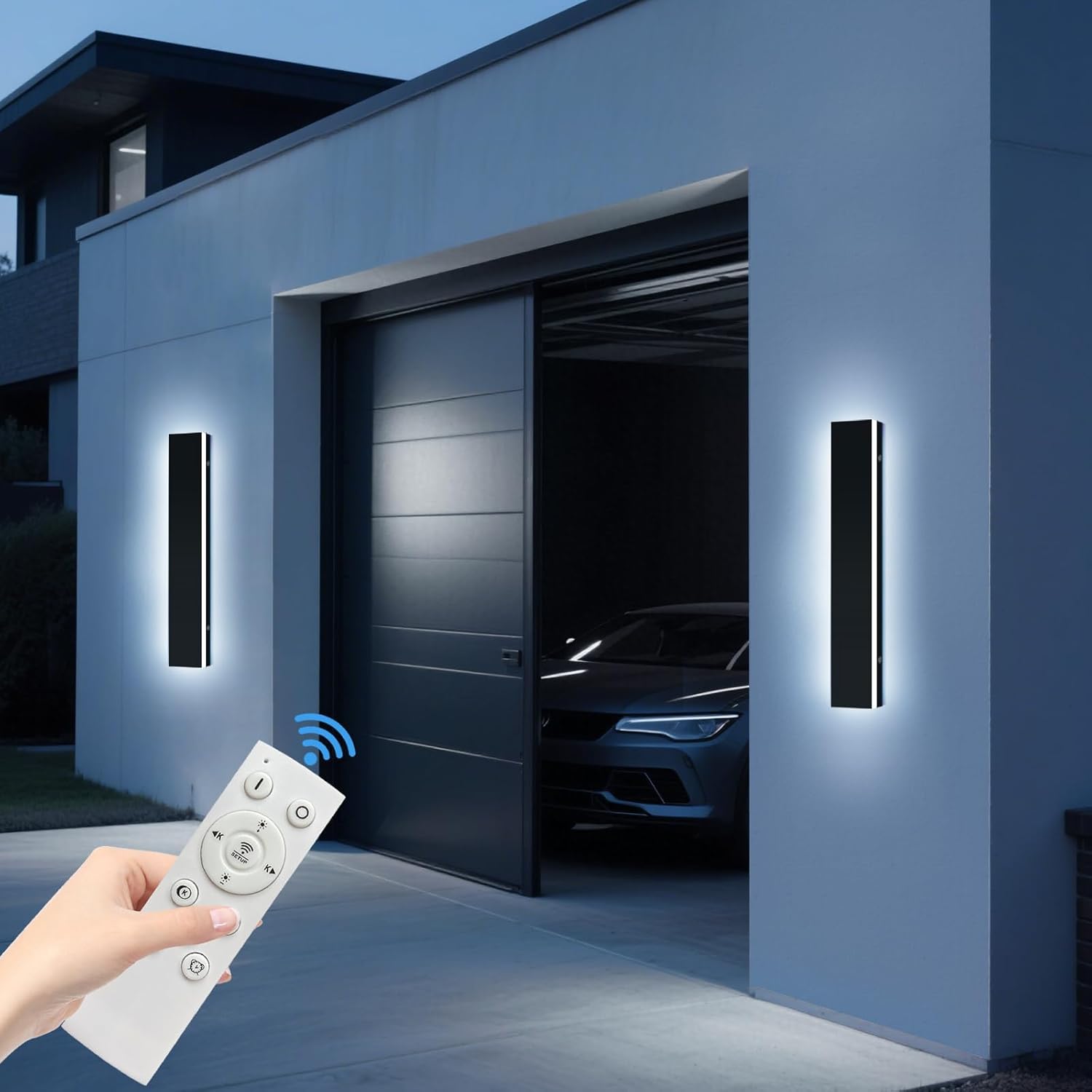 Upgrade Widened 2 Pack 23.6inch Outdoor Wall Sconce, 3000K-6000K Dimmable Modern LED Wall Mount Light, IP65 Waterproof, Black Exterior Lighting for House, Porch, Garage with Remote Control