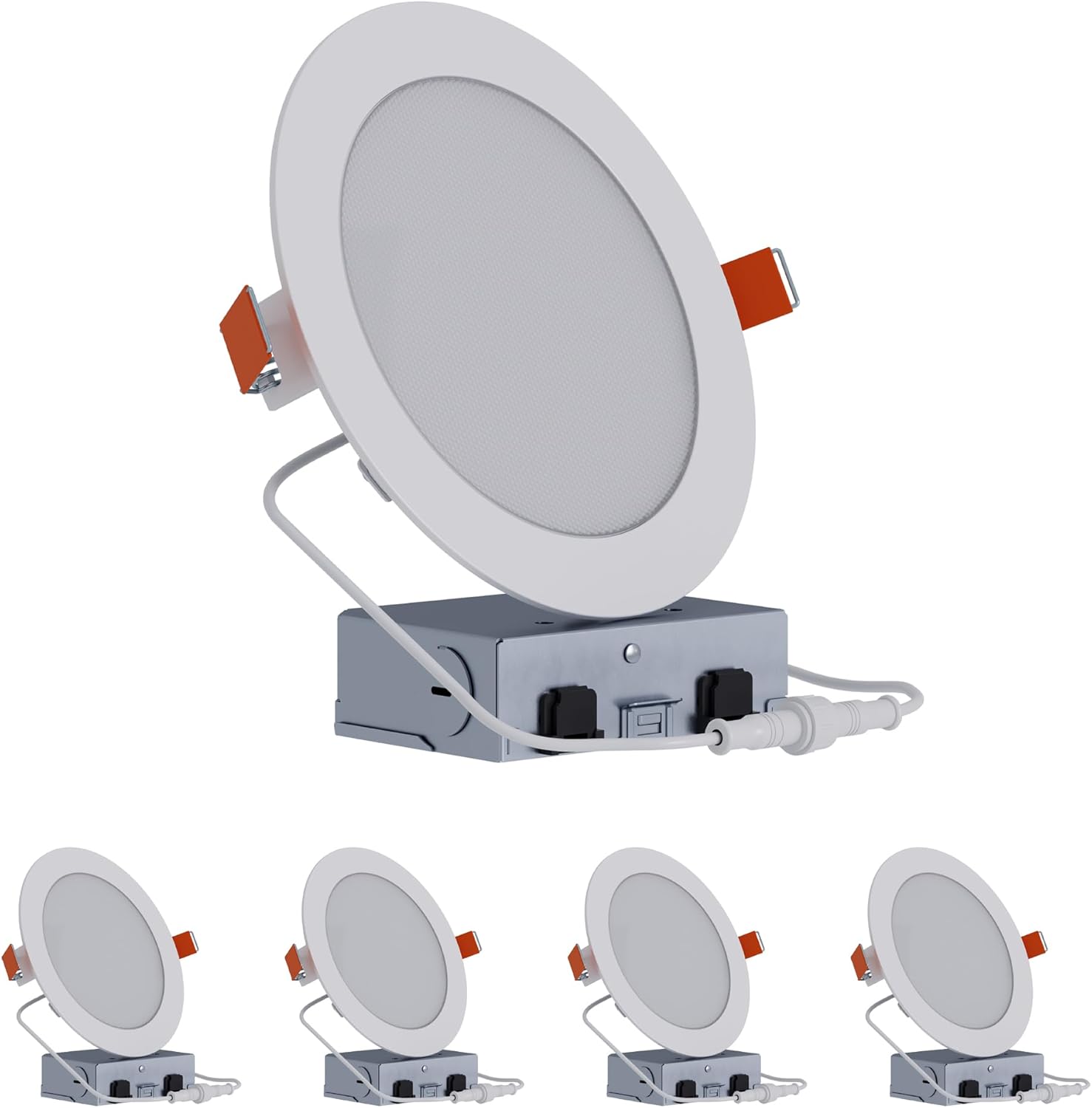 HALO 4 inch LED Recessed Ceiling Light 6-Pack Canless Dimmable with Selectable Lumens and Selectable Color Temperature 2700K-5000K Indoor Outdoor Wet Location Airtight Ultra Slim HLB4LSFS5-6PK
