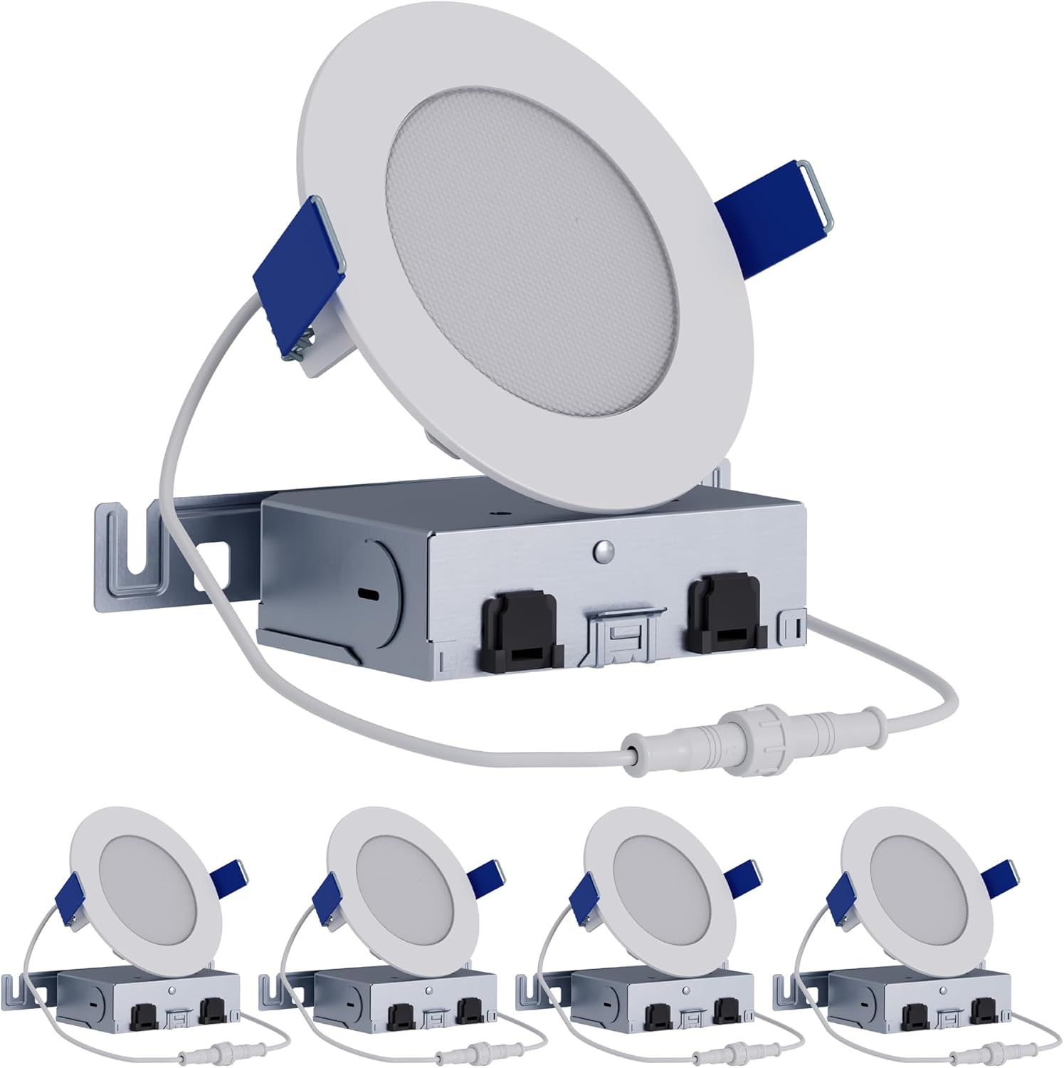 HALO 4 inch LED Recessed Ceiling Light 4-Pack Canless Dimmable with Selectable Lumens and Selectable Color Temperature 2700K-5000K Indoor Outdoor Wet Location Airtight Ultra Slim HLB4LSFS5-4PK